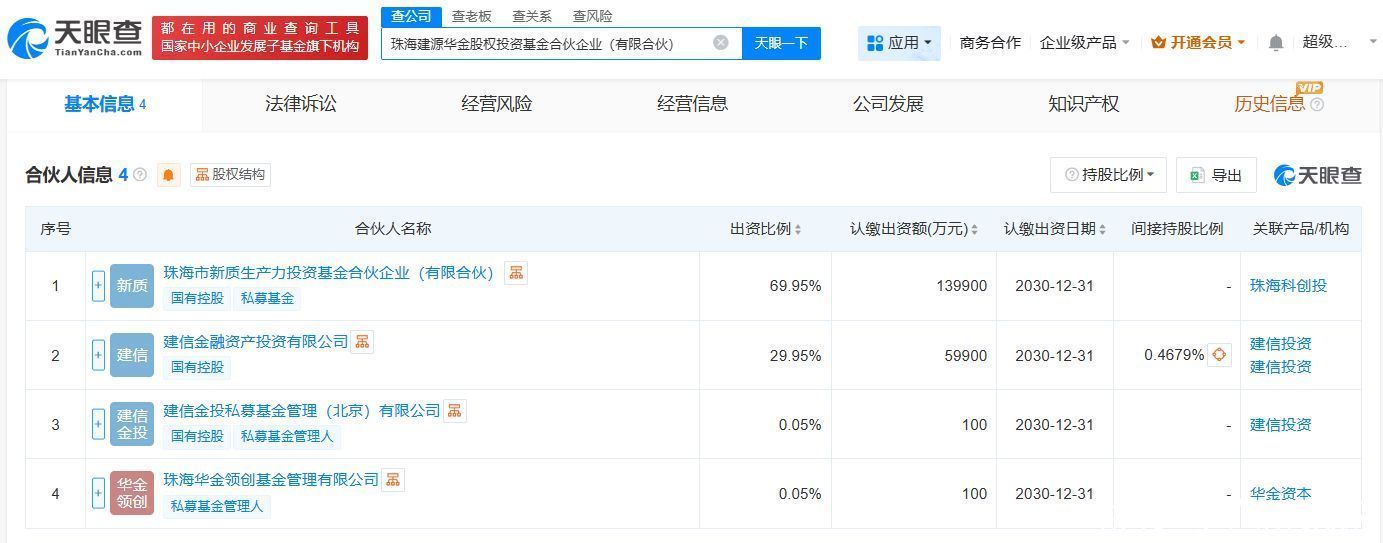 天眼查工商信息显示,近日imtoken钱包下载app安卓版,珠海建源华金股权投资基金合伙企业(有限合伙)成立,执行事务合伙人为珠海华金领创基金管理有限公司、建信金投私募基金管理(北京)有限公司,imtoken最新下载地址出资额20亿人民币,经营范围包括以私募基金从事股权投资、投资管理、资产管理等活动。合伙人信息显示,该基金由珠海市新质生产力投资基金合伙企业(有限合伙)、建信金融资产投资有限公司等共同出资。